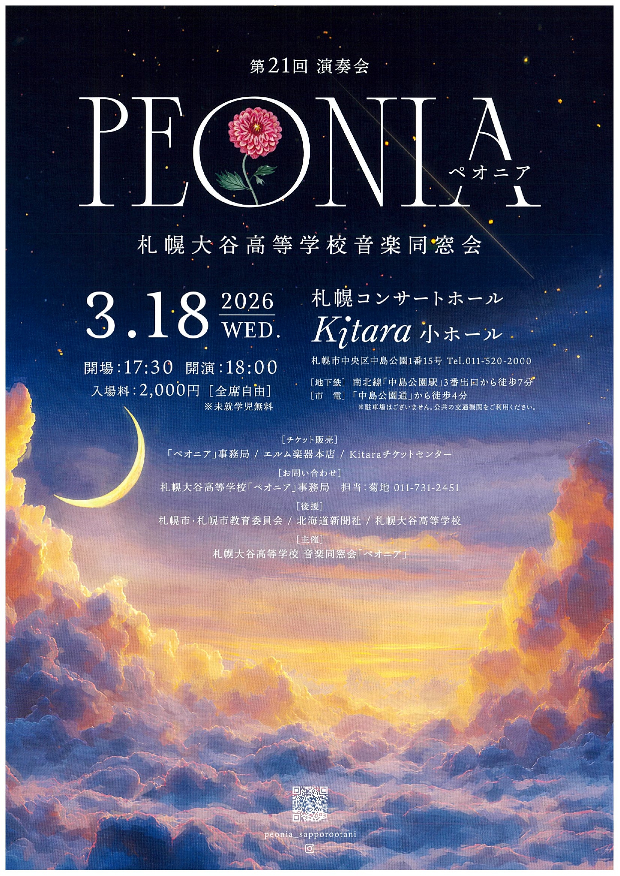 2026年3月18日(水)17:30開場 18:00開演 札幌 その他 【プレイガイド】第21回ペオニア演奏会 エルム楽器本店にてチケット発売中です。 日時 2026年3月18日(水)17:30開場 18:00開演 会場 Kitara 小ホール 札幌市中央区中島公園1番15号 お問い合わせ 電話番号:011-350-1113 メールアドレス:elmh@elm-t.co.jp 備考 -- NEWS CATEGORYお知らせカテゴリー イベント・コンサートセール・フェアその他 SHOP CATEGORY店舗カテゴリー 全店札幌釧路苫小牧 NEW POSTS新着記事 全店 その他 ヤマハのグループレッスン 2026春の体験・入会受付中! 2026年2月21日(土)発売予定 全店 その他 ヤマハエレクトーンSTAGEA『ELS-03シリーズ』発売のお知らせ 2026年3月5日(木)発売 全店 その他 ヤマハグランドピアノ『C3X espressivo』『C2X espressivo』発売のお知らせ 2026年3月31日(火)まで 全店 セール・フェア ヤマハ電子ピアノ クラビノーバCLPシリーズ エルム楽器音楽教室生応援キャンペーン 〜2026年3月31日(火)まで 全店 セール・フェア 【延長決定!】カシオ CELVIANO スタートアップキャンペーン実施中! 全店 セール・フェア 中古ピアノ在庫一覧表 随時更新中 全店 セール・フェア 【レッスン在籍生徒様限定】ヤマハピアノご購入サポートプラン 2026年3月18日(水)17:30開場 18:00開演 札幌 その他 【プレイガイド】第21回ペオニア演奏会 2026年3月31日(火)まで 全店 セール・フェア CASIO電子ピアノ購入キャンペーン 2026年5月31日(日)13:00開場 13:30開演 札幌 その他 【プレイガイド】みんなが知っている 名曲揃いの演奏会 2026年4月4日(土)18:30開場 19:00開演 札幌 その他 【プレイガイド】ヴァイオリンとギター 情熱の弦