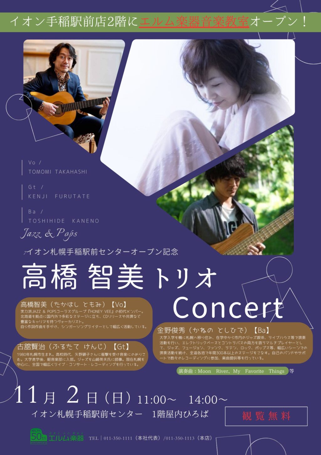 11/2(日)高橋智美トリオConcert inイオン札幌手稲駅前