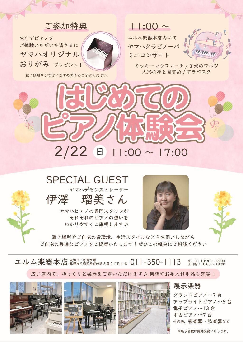 また、11:00~は店舗内でヤマハデモンストレーターの伊澤瑠美さんによるヤマハクラビノーバミニコンサートも行います!