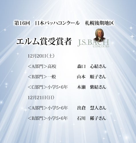 日本バッハコンクール札幌後期地区 エルム賞のご案内