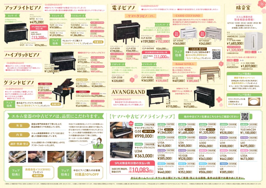 ご予約はこちら→札幌でピアノをお探しならエルム楽器本店|中古ピアノ取扱多数