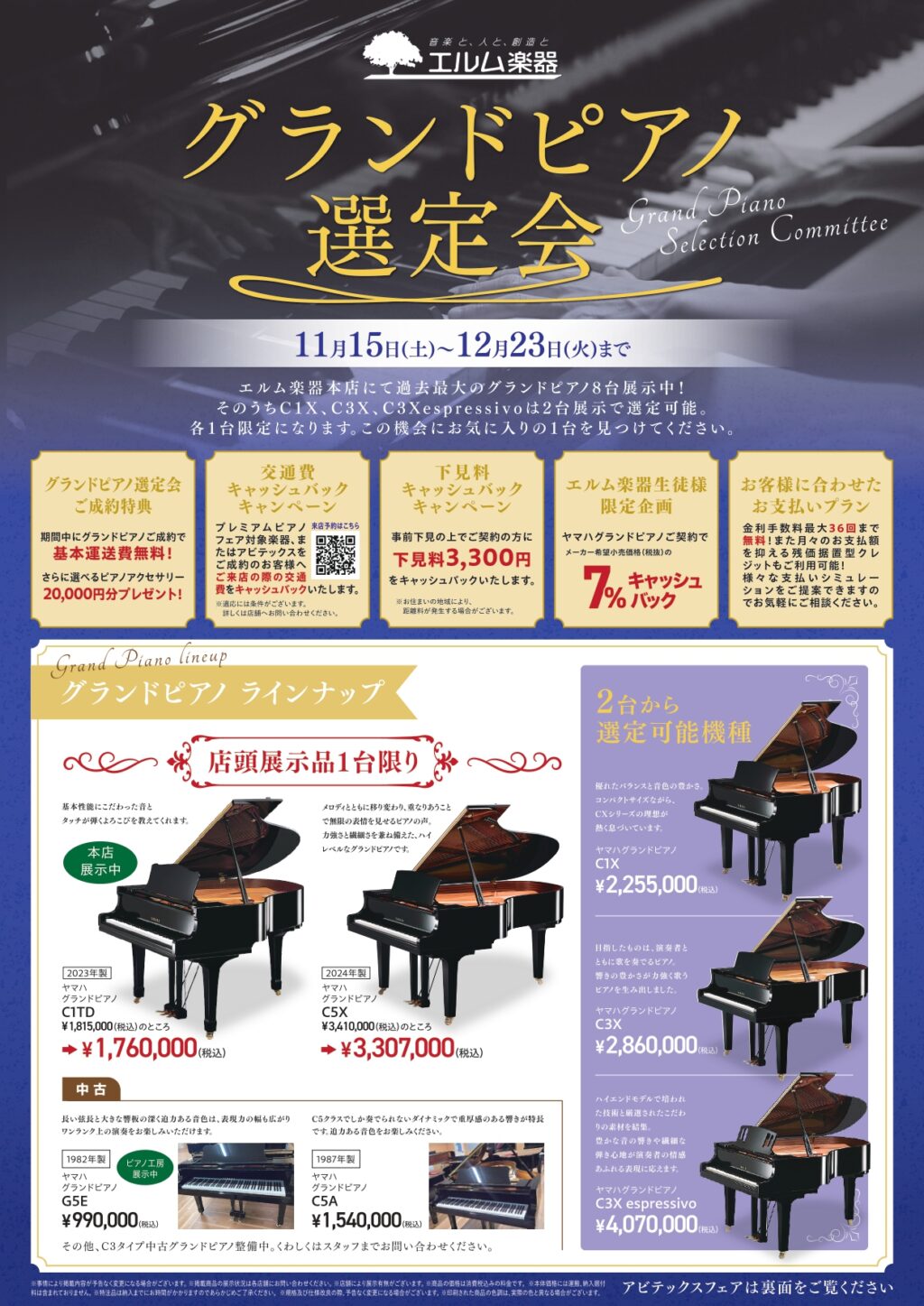 エルム楽器札幌本店にてグランドピアノ選定会を開催中です。