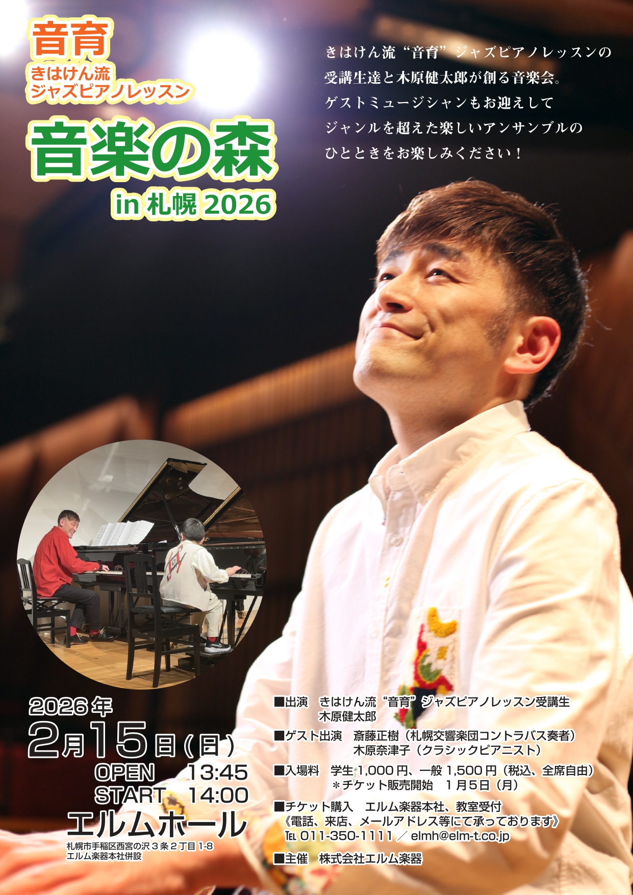 全店その他 ヤマハのグループレッスン 2026春の体験・入会受付中! 2026年3月31日(火)まで 全店セール・フェア ヤマハ電子ピアノ クラビノーバCLPシリーズ エルム楽器音楽教室生応援キャンペーン 2026年3月5日(木)発売 全店その他 グランドピアノ『C3X espressivo』『C2X espressivo』発売のお知らせ 全店セール・フェア 中古ピアノ在庫一覧表 随時更新中 2026年1月24・25日 展示会 10:00~18:00 合奏会 25日のみ 13:30~15:30 苫小牧イベント・コンサートセール・フェア ヤマハトランペット展示&「あつまれ!ラッパ吹き!」 トランペット合奏会 2026年1月25日(日) 11:30~エレクトーンとぷっぷるのステージ(ぷっぷるも登場します♪♪) 13:00~エレクトーンオンステージ(ぷっぷるは登場しません) 札幌イベント・コンサート 2026ニューイヤーエレクトーンオンステージ inイオン札幌藻岩店 2025年12月15日(月)~2026年1月31日(土) 全店セール・フェア YAMAHA GUITAR WINTER CAMPAIGN 2025 2025年11月29日(土)~2026年1月31日(土) 全店セール・フェア ヤマハ電子ドラム「DTXシリーズ」プレミアムプレゼントキャンペーン 2026年1月26日(月)発売予定 全店その他 「ピアノ・エレクトーン演奏グレードBコース10~6級練習問題集vol.2」販売開始のお知らせ 2026年2月15日(日) 開場 13:45 開演 14:00 札幌イベント・コンサート きはけん流”音育”ジャズピアノレッスン『音楽の森 in 札幌 2026』 2026年2月7日(土)・16日(月) 札幌イベント・コンサート 円山 冬のハープセミナー♪ 2025年11月1日(土)~2026年2月28日(土) 札幌セール・フェア アビテックス Web見積りキャンペーン 2026/2/28まで 全店セール・フェア ピアノ調律キャンペーン 2026年1月10日(土)~3月8日(日) 札幌セール・フェア ヘンレ版フェア開催中! 12> NEWS CATEGORYお知らせカテゴリー イベント・コンサートセール・フェアその他 SHOP CATEGORY店舗カテゴリー 全店札幌釧路苫小牧 NEW POSTS新着記事 全店 その他 ヤマハのグループレッスン 2026春の体験・入会受付中! 2026年3月31日(火)まで 全店 セール・フェア ヤマハ電子ピアノ クラビノーバCLPシリーズ エルム楽器音楽教室生応援キャンペーン 2026年3月5日(木)発売 全店 その他 グランドピアノ『C3X espressivo』『C2X espressivo』発売のお知らせ 全店 セール・フェア 中古ピアノ在庫一覧表 随時更新中 2026年1月24・25日 展示会 10:00~18:00 合奏会 25日のみ 13:30~15:30 苫小牧 イベント・コンサートセール・フェア ヤマハトランペット展示&「あつまれ!ラッパ吹き!」 トランペット合奏会 2026年1月25日(日) 11:30~エレクトーンとぷっぷるのステージ(ぷっぷるも登場します♪♪) 13:00~エレクトーンオンステージ(ぷっぷるは登場しません) 札幌 イベント・コンサート 2026ニューイヤーエレクトーンオンステージ inイオン札幌藻岩店 2025年12月15日(月)~2026年1月31日(土) 全店 セール・フェア YAMAHA GUITAR WINTER CAMPAIGN 2025 2025年11月29日(土)~2026年1月31日(土) 全店 セール・フェア ヤマハ電子ドラム「DTXシリーズ」プレミアムプレゼントキャンペーン 2026年1月26日(月)発売予定 全店 その他 「ピアノ・エレクトーン演奏グレードBコース10~6級練習問題集vol.2」販売開始のお知らせ