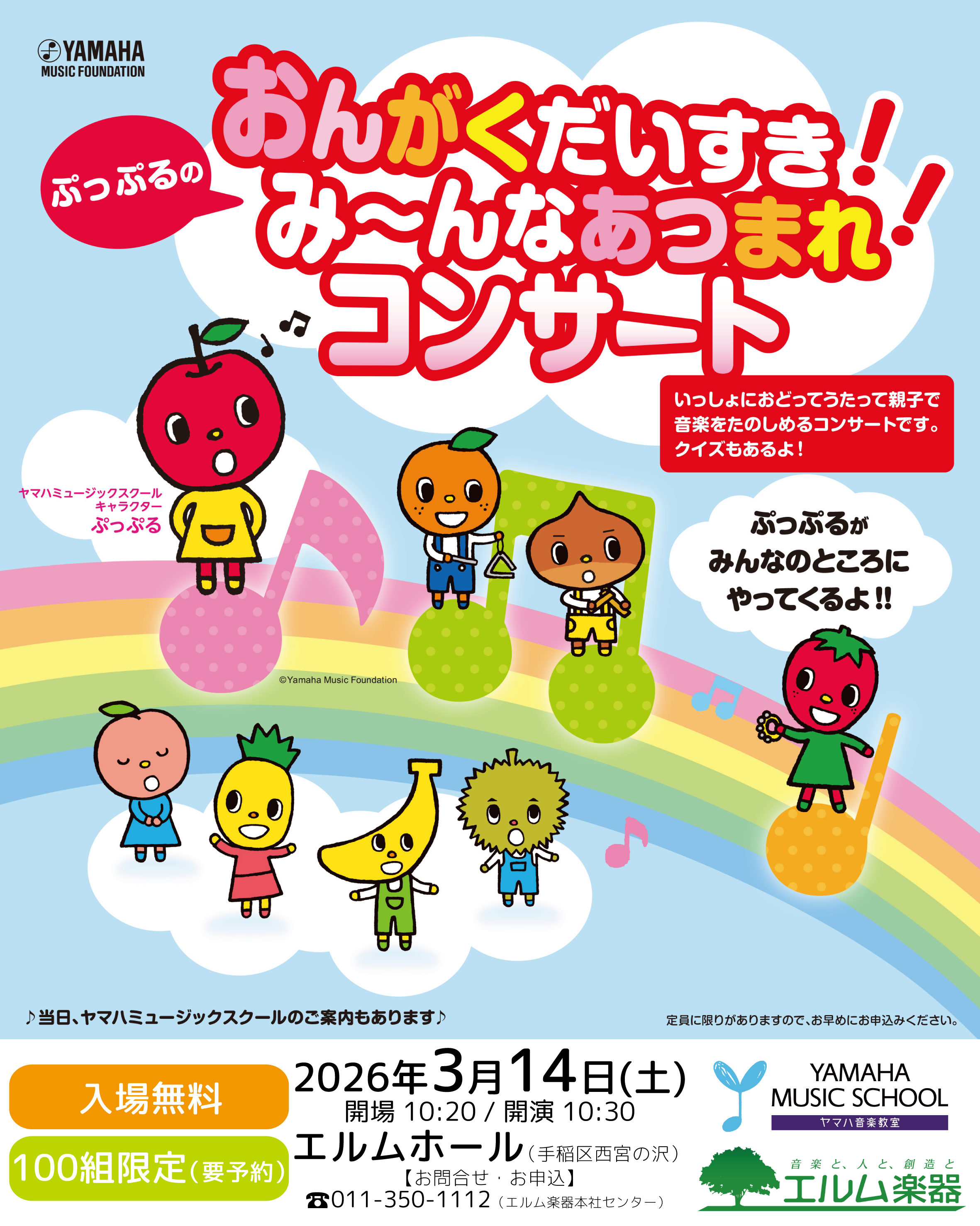 全店その他 ヤマハのグループレッスン 2026春の体験・入会受付中! 2026年2月21日(土)~3月22日(日) 全店セール・フェア エルム楽器「春の感謝祭」開催中 2026年2月21日(土)発売 全店その他 【札幌本店・苫小牧・釧路で展示中!】ヤマハエレクトーン STAGEA『ELS-03シリーズ』発売 2026年3月5日(木)発売 全店その他 ヤマハグランドピアノ『C3X espressivo』『C2X espressivo』発売のお知らせ 〜2026年3月31日(火)まで 全店セール・フェア 【延長決定!】カシオ CELVIANO スタートアップキャンペーン実施中! 2026年3月31日(火)まで 全店セール・フェア ヤマハ電子ピアノ クラビノーバCLPシリーズ エルム楽器音楽教室生応援キャンペーン 全店セール・フェア 【レッスン在籍生徒様限定】ヤマハピアノご購入サポートプラン 全店セール・フェア 中古ピアノ在庫一覧表 随時更新中 2026年3月5日(日)~5月6日(水) 全店セール・フェア CASIO電子ピアノ 新生活キャンペーン 札幌その他 札幌本店 3月臨時休業のお知らせ 2026年3月1日(日)15:00~(苫小牧支店) 2026年3月7日(土)15:00~(千歳支店) 千歳苫小牧イベント・コンサート 新型エレクトーン ELS-03シリーズ デビューミニコンサート&体感DAY(千歳・苫小牧) 2026年3月8日(日)13:10開場 13:30開演 千歳苫小牧イベント・コンサート 18th ジュニアピアノコンサートin苫小牧 2026年1月10日(土)~3月8日(日) 札幌セール・フェア ヘンレ版フェア開催中! 2026年3月14日(土)開場10:20 開演10:30 札幌イベント・コンサート 本社 ぷっぷるのおんがくだいすき!み~んなあつまれ!コンサート 2026年3月15日(日) ≪コンサート≫13:00~13:30 ≪楽器体験≫(コンサート終演後)13:30~14:30頃 釧路イベント・コンサート 3/15(日)新型エレクトーン ELS-03シリーズ デビューミニコンサート&体感DAY in KUSHIRO 2月28日(土)・3月1日(日) 3月14日(土)・3月15日(日) 札幌セール・フェア ヤマハ 防音体験・相談会 2026年3月18日(水)17:30開場 18:00開演 札幌その他 【プレイガイド】第21回ペオニア演奏会 2026年4月19日(日)10:30 札幌イベント・コンサート ヤマハピアノコンサートグレード 受験者募集中 123> NEWS CATEGORYお知らせカテゴリー イベント・コンサートセール・フェアその他 SHOP CATEGORY店舗カテゴリー 全店千歳札幌釧路苫小牧 NEW POSTS新着記事 全店 その他 ヤマハのグループレッスン 2026春の体験・入会受付中! 2026年2月21日(土)~3月22日(日) 全店 セール・フェア エルム楽器「春の感謝祭」開催中 2026年2月21日(土)発売 全店 その他 【札幌本店・苫小牧・釧路で展示中!】ヤマハエレクトーン STAGEA『ELS-03シリーズ』発売 2026年3月5日(木)発売 全店 その他 ヤマハグランドピアノ『C3X espressivo』『C2X espressivo』発売のお知らせ 〜2026年3月31日(火)まで 全店 セール・フェア 【延長決定!】カシオ CELVIANO スタートアップキャンペーン実施中! 2026年3月31日(火)まで 全店 セール・フェア ヤマハ電子ピアノ クラビノーバCLPシリーズ エルム楽器音楽教室生応援キャンペーン 全店 セール・フェア 【レッスン在籍生徒様限定】ヤマハピアノご購入サポートプラン 全店 セール・フェア 中古ピアノ在庫一覧表 随時更新中 2026年3月5日(日)~5月6日(水) 全店 セール・フェア CASIO電子ピアノ 新生活キャンペーン 札幌 その他 札幌本店 3月臨時休業のお知らせ 2026年3月1日(日)15:00~(苫小牧支店) 2026年3月7日(土)15:00~(千歳支店) 千歳苫小牧 イベント・コンサート 新型エレクトーン ELS-03シリーズ デビューミニコンサート&体感DAY(千歳・苫小牧) 2026年3月8日(日)13:10開場 13:30開演 千歳苫小牧 イベント・コンサート 18th ジュニアピアノコンサートin苫小牧 2026年1月10日(土)~3月8日(日) 札幌 セール・フェア ヘンレ版フェア開催中!