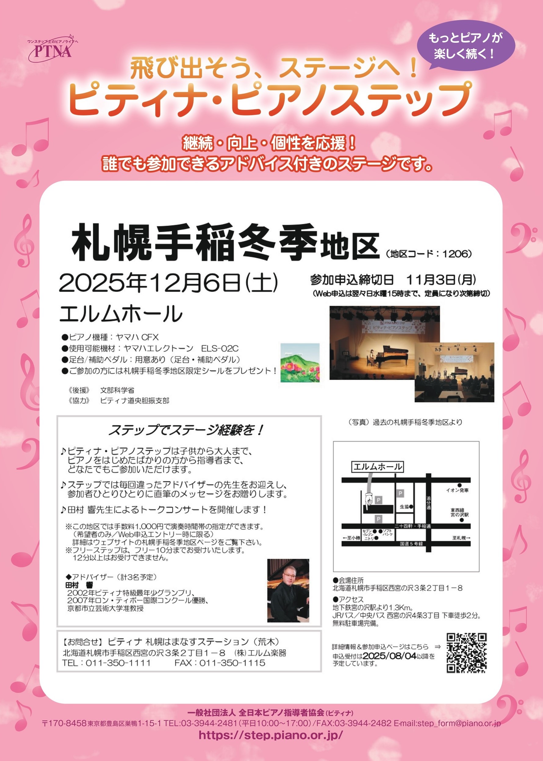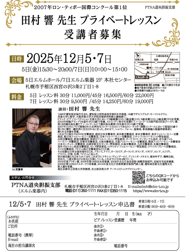 2025年9月1日(月)~10月31日(金) 全店その他 楽譜を買って景品を当てよう! 秋のレシート応募キャンペーン実施中!! 2025年10月31日(金)まで 札幌セール・フェア ハッピーハロウィンフェア開催! 2025年11月2日(日)10:30~ 千歳イベント・コンサート 大人のピアノ弾きあい会 2025年11月4日(月)18:30開演(30~40分程度) 札幌イベント・コンサート エレクトーンライブ「山﨑雅也 in マルヤマクラス」 2025年11月6日(木)open18:00 start18:15 苫小牧イベント・コンサート エレクトーン昭和歌謡ヒットパレード(エレでヒッパレ) 2025年11月16日(日) (時間指定はできません。詳細は締め切り後決定) 苫小牧その他 2025アドバイス会 10月13日(月祝) 札幌その他 ブルグミュラーコンクール札幌手稲地区褒章 2025年11月24日(祝月)9:30-16:00 千歳その他 ブルグミュラーコンクール道央胆振ファイナル教室ピアノレンタルについて 2025年12月6日(土) 札幌イベント・コンサート ピティナ・ピアノステップ 札幌手稲冬季地区 2025年12月5日(金) 15:30~20:00・12月7日(日) 10:00~15:00 札幌その他 ピアニスト田村響先生プライベートレッスン 受講者募集 <1234> NEWS CATEGORYお知らせカテゴリー イベント・コンサートセール・フェアその他 SHOP CATEGORY店舗カテゴリー 全店千歳札幌室蘭釧路苫小牧 NEW POSTS新着記事 札幌 その他 イオン手稲駅前センター 10/31 グランドオープン! 2025年11月3日(祝月) 第一部open13:00 start13:20 第二部start17:20 ※チケットは各部共通、入り自由です 全店 イベント・コンサート ELM Electone Special Live2025 in PennyLane24 2026年3月31日(火)まで 全店 セール・フェア ヤマハ電子ピアノ クラビノーバCLPシリーズ エルム楽器音楽教室生応援キャンペーン 2025年11月1日~12月26日(金)まで 全店 イベント・コンサートセール・フェア Premium Piano Fair 10/31(金)まで 札幌 セール・フェア エルム楽器 弦楽器Special Sale 全店 セール・フェア 中古ピアノ在庫一覧表 随時更新中 2026年1月16日(金)10:30~12:00 札幌 イベント・コンサート 赤松林太郎 電子ピアノの活用法セミナー 2025.11.2(日) ①11:00- ②14:00- 各30分程度 札幌 イベント・コンサート 11/2(日)高橋智美トリオConcert inイオン札幌手稲駅前 2025年10月25日(土) 札幌 イベント・コンサート ハロウィンストリートコンサート開催決定! 10月11日(土)~13日(月祝) 10月25日(土)・26日(日) 札幌 セール・フェア ヤマハ 防音体験・相談会 2025.10/28(火)11:00-12:00 札幌 イベント・コンサート 札幌本社センター《美声のための♪ヴォイトレ&ストレッチトレーニング!》